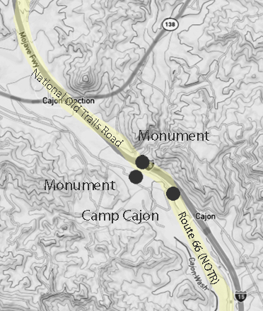 Camp Cajon![]() Camp Cajon was a rest stop located near the Cajon Pass in Southern California, and it was built in 1919. Back in the day, it was a popular spot for people driving into the Los Angeles area. The camp was a place where travelers could take a break, grab some supplies, and enjoy the beautiful mountain views as they made their way through the tough terrain of the San Bernardino Mountains. Camp Cajon was important because it represented the early days of road trips when more and more people were starting to explore the country by car. It had picnic areas, a small store, and even a monument to honor the pioneers who had traveled through the area before there were good roads. Sadly, in 1938, a big flood destroyed Camp Cajon, and it was never rebuilt. Even though the camp is gone, its memory still reminds us of the early days of road travel and how crucial the Cajon Pass has always been for getting around Southern California. Today, the area where Camp Cajon used to be is part of a major transportation route. Camp Cajon Dedication![]()