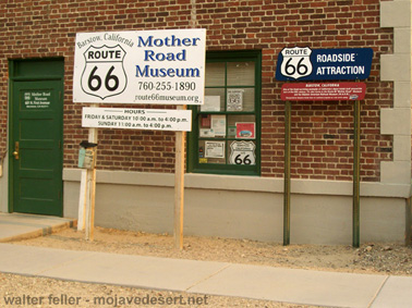 Route 66 Mother Road MuseumThe Route 66 "Mother Road" Museum displays a collection of historic Route 66 artifacts and photographs related to the entire highway and the Mojave Desert communities it passes through. |