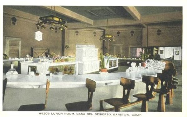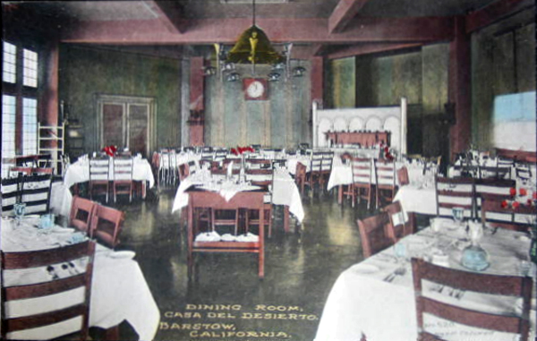 Casa del Desierto - Harvey House![]() Casa del Desierto: The Spanish for "House of the Desert" In 1911 Fred Harvey of the Harvey House system opened up the Casa Del Desierto featuring gourmet dining and lodging were featured and for many years the Barstow Harvey House was considered the jewel of the chain. With a full ballroom the neo-Southwestern style building also became the site for many of the town's dances and social events. ![]() Courtesy Mojave River Valley Museum The first Harvey House and railroad depot was built in May, 1887. Only two months later in July, it burned down and was immediately rebuilt. In 1892 the depot burned down again and was rebuilt. In 1908 the depot burned down again. Harvey House on the forth try, in 1911, the building was made of bricks and didn't burn down. In 1974, with the station already closed and thoroughly vandalized, Santa Fe prepared to demolish the structure. Citizens formed to save the building. In 1985 Santa Fe donated the buildings to the City of Barstow. Casa del Desierto was renovated, and only one day before the re-dedication in 1992, the Landers earthquake struck it was all set back several more years and millions of dollars. Casa Del Desierto was again repaired and re-dedicated in 1999. ![]() Courtesy Mojave River Valley Museum ![]() Courtesy Mojave River Valley Museum |