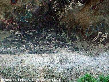 Mysteries of the DesertNative Americans, migrating through here in their continuous search for food and water, left behind evidence of their activities. Petroglyphs have been found carved into canyon walls and boulders, generally near food or water sites. Pictographs, painted in red, black, and white are found on the ceilings and walls of rock shelters. Mortars and grinding slicks, where seeds were crushed or ground, are also found among the rocks.< Previous - Next > ![]() Petroglyphs |