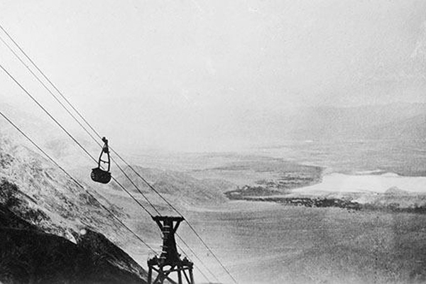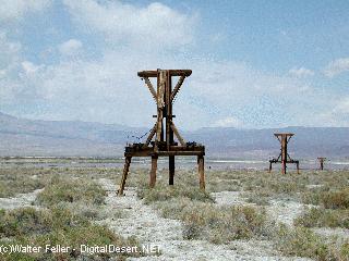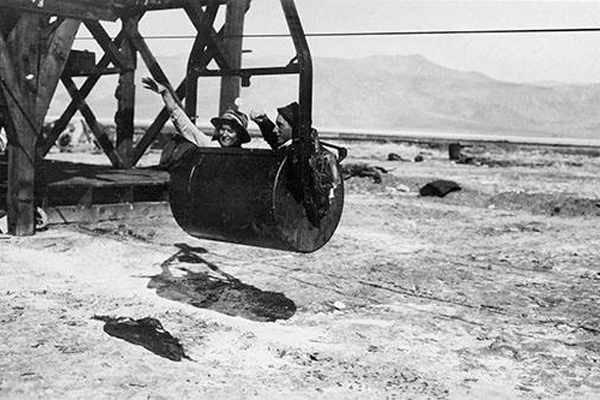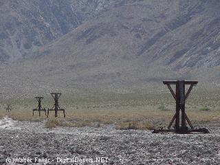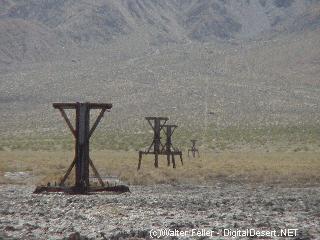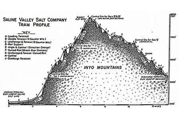 Remarkably pure salt was extracted from the brine in the Saline Valley salt lake at the salt works. The salt was loaded on to the tram which carried it 7,500 feet up to the crest of the Inyo Mountains, then 5,200 feet down to a point near Swansea in the Owens Valley, 13 miles away. ![]() ![]()
