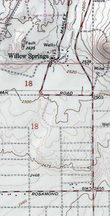 Willow Springs, California![]() These local springs provided water for Native Americans and early travelers. Willow Springs was visited by Padre Garces in 1776 while following the old Horse Thief Trail (later known as Joe Walker Trail) - Fremont stopped here in 1844, and the famished Jayhawk Party of 1850 found water here while struggling from Death Valley to Los Angeles. Still later, Willow Springs was a stage station of the Los Angeles-Havilah and Inyo Stage Lines. Most of the masonry buildings were built around 1900 by Ezra Hamilton. A post office operated at Willow Springs from 1909 to 1918 ![]() ![]() ![]() ![]() ![]() ![]() |