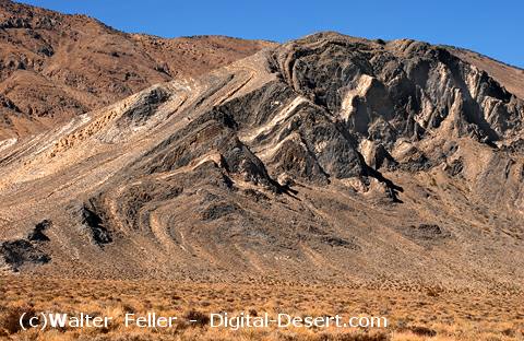 high-clearance first 10 miles to talc mines; 4x4 required beyond Distance: 21 miles to Butte Valley Start: West Side Road, 2.9 miles from southern end Camping: yes, after first 2 miles Description: This road follows Warm Springs Canyon past several talc mines before leading into scenic Butte Valley, at an elevation of 4500'. A rough road leads out of the park over Mengle Pass and into Panamint Valley to the west via Goler Wash (4x4 required). Butte Valley Points of InterestGeologyButte Valley GeologyThe bedrock geology of the Precambrian rocks of the Warm Springs area gives way to Jurassic quartz monzonite ...Warm Springs Talc MinesThe Warm Springs talc mines are the most recently active talc mines in the area and were a major ...Panamint RangeThis subsection comprises the Panamint Mountains, which are between Panamint Valley and Death Valley. ... |