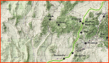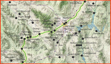 OST/Mormon Road Tour MapsOld Spanish Trail/Mormon Wagon Road through the MojaveThis photo tour begins at the far northeastern edge of the Mojave system, just outside the desert in southeastern Utah at Mountain Meadows. From there it follows the route south to the Virgin River and on to Las Vegas, then turns west into the Mojave proper. The story of the crossing is a steady march from one salty waterhole to the next, from tepid river to tepid river, until the Cajon Summit is reached and the long, complicated descent is made through Cajon Pass into Southern California. ![]() |