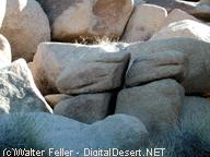 Geology Tour Road: Stop #6 Rock SculptureThe White Tank monzogranite found at Joshua Tree National Park displays probably the most extensive rounded rock masses than any place in the world. Large bodies of monzogranite have sets of cracks, called joints, that intersect at roughly right angles to each other. Nearly vertical cracks probably occured when the rock cooled and contracted; faulting may have also contributed. As erosion removed the overlying rock, horizontal cracks were made when the rock mass expanded upward.Jointing produces blocks of more or less cube-shaped rock. While the monzogranite was below the surface water containing carbon dioxide seeped down through the joint. This action wore away at the cracks little by little, breaking off mineral grains from the joints. This type of erosion is more effective at the edges and corners, and over a long period of time, changed the rock shape from cubical to spherical. ![]() ![]() ![]() PREVIOUS - NEXT