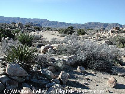 Geology Tour Road:Introduction: Geology and the ParkThe face of the earth at any time represents only a fleeting moment in a very long history. Major changes are going on all around us, and the way the earth looks now is a dynamic product of these changes. Geology is the science that deals with these changes. This science may be defined as the the study of the processes operating within and on the earth at the present and as revealed by evidence in the rock record, throughout most of its past of 4.5 billion years.![]() Intrusions The area within Joshua Tree National Park has been undergoing changes for at least 1.5 billion years. Two widely separated episodes of mountain building has produced the results we see today. The last of these episodes was followed by an uplift period and deep erosion, and then additional uplift along the faults. Exposed by this erosion were two rock bodies originally formed deep below the Earth's surface. Pinto Gneiss, formed 1.7 billion years ago was intruded by molten magma 85 million years ago, which then cooled forming White Tank monzogranite. ![]() Wash There were probably many other geologic events occuring both before and after the formation of the gneiss and intrusion of the monzogranite. However, any record of these events has been lost through erosion. What does remain, what we see today, is the roots of ancient mountains. These roots have been faulted, jointed, weathered and eroded to produced the unique scenery we see today in Joshua Tree National Park. PREVIOUS - NEXT