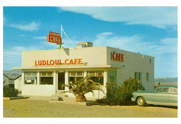 Ludlow, California![]() Main St. Ludlow, California 1920 (colorized) ![]() Ludlow Cafe - 1930s Exploring Ludlow's HistoryIntroduction:Ludlow, California, a small unincorporated town along Route 66, has a fascinating history stretching back to the late 19th century. Looking into Ludlow's captivating past sheds light on its significant role in California's development and the nation.Early Settlement:Ludlow's story began in the 1870s when it served as a crucial railway stop along the Atlantic and Pacific Railroad. The town was named Ludlow in honor of William Ludlow, a prominent railroad engineer. Ludlow's establishment facilitated transportation and trade in the region.Mining Boom:Ludlow experienced a significant boom during the early 1900s, primarily due to the discovery of rich mineral deposits in nearby mines. Gold, silver, and copper mining became the backbone of Ludlow's economy, attracting miners and prospectors from far and wide. The town flourished with the opening of several mines, leading to a surge in population and the establishment of essential amenities such as schools, saloons, and general stores.The Birth of Route 66:In 1926, Route 66 connected Chicago, Illinois, to Santa Monica, California. Ludlow, strategically located along this iconic highway, became a popular pit stop for travelers, providing essential services and accommodations. The construction of Route 66 brought increased prosperity to Ludlow, as it became a hub for tourists and truckers alike.The Rise and Fall:Ludlow continued to thrive throughout the mid-20th century, with gas stations, cafes, and motels catering to the needs of travelers along Route 66. However, the town's fortunes took a downturn with the opening of Interstate 40 in the 1970s, which bypassed Ludlow, diverting traffic away from the once-thriving town. As a result, Ludlow gradually declined, with many businesses closing their doors.Preservation and Revitalization:Despite its decline, Ludlow still bears witness to its storied past. Today, it reminds us of Route 66's golden age, with several historic buildings still standing. Efforts are underway to preserve and restore these structures, allowing visitors to glimpse Ludlow's vibrant past. The town has also become popular with photographers and history enthusiasts, who appreciate its authentic charm and nostalgic appeal.Conclusion:Ludlow, California, has a rich history as a railway stop, mining boomtown, and a prominent pit stop along Route 66. While the town has experienced its fair share of challenges, its historical significance and unique character make it a place worth exploring for anyone interested in California's past. Ludlow stands as an enduring legacy of the Old West and the indomitable spirit of the communities that shaped the American landscape.![]() ![]() Ludlow Cafe - 2013 The town started as a water stop for the Atlantic and Pacific Railroad in 1883. Ore was found in the nearby hills, leading to a boom. By the 1940s, mining had ceased and the town was left with only the tourist traffic from Route 66. When Interstate 40 was built, there was little business and the residents departed, leaving empty buildings that still stand beside old Route 66. ![]() Ludlow, California, is a small town, with a population of roughly 10 residents, in the Mojave Desert about halfway between Needles and Barstow abutting Interstate 40, continuing it's long tradition of providing services to desert travelers. ![]() A magnitude 5.1 earthquake struck the Mojave Desert at Ludlow December 6th, 2008. Ref - BLM |