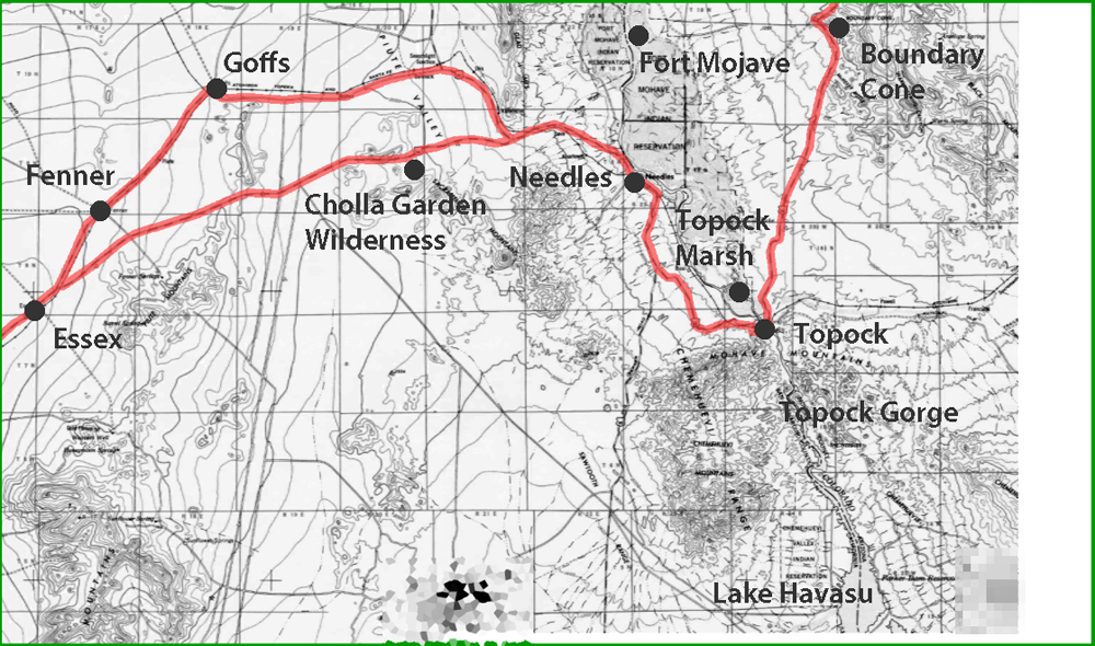Needles![]() Essex - Goffs - Cholla Garden - Needles - Colorado River - Havasu NWR - Boundary Cone |